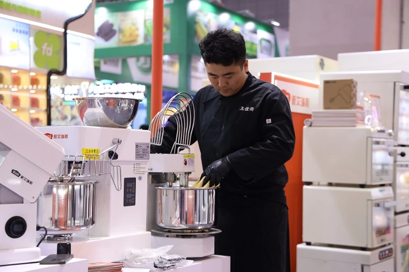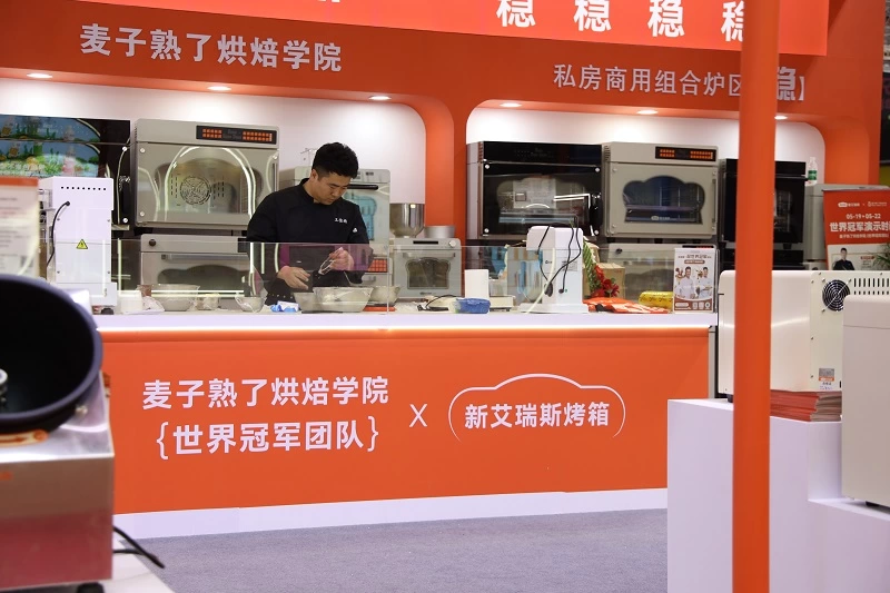 本届展会上,新艾瑞斯特邀合作多年的烘焙冠军团队进行现场演示。通过创意甜品提拉米苏、法式泡芙到药膳法棍、高含水恰巴塔等经典烘焙品的制作过程,直观展现E5s烤箱在控温稳定性与模式切换灵活度方面的技术优势。
