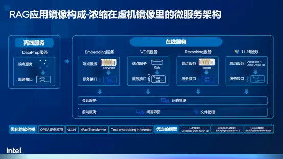 这也是英特尔和火山引擎推出RAG应用镜像的原因之一,该镜像实现了RAG全流程模快的集成,包含Embedding模块、向量数据库、Re-Rank,以及一个7B参数的DeepSeek蒸馏模型,并在文档准备工作中提供了用于在线问答的服务Dataprep。而对开发者来说,通过火山引擎选择云实例后,仅需3分钟左右就能完成环境部署,掌握大模型应用开发的核心思路,为构建精准、合规的智能体应用奠定基础。