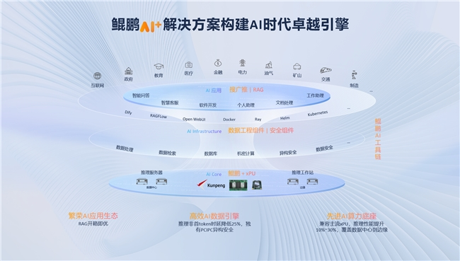 2、AI Infra方面,提供鲲鹏AI数据工程组件和鲲鹏AI安全组件,提供性能更优、更安全的数据处理、数据检索等能力。