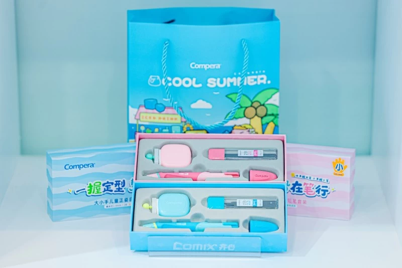 此外,坪山还携手辖区优质文化企业,集中展示坪山文化创新性发展成果。作为坪山区代表企业之一,齐心集团以经典的齐心文创小花车形象带来吾皇猫、神烦鸟、小狗蛇、山海经等多款热门IP文创产品,以及旗下Compera和V'mo品牌多款好物,其中包括Compera大小手正姿自动铅笔、V'mo指纹锁儿童保温杯两款首次亮相的新品。