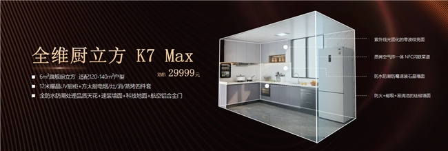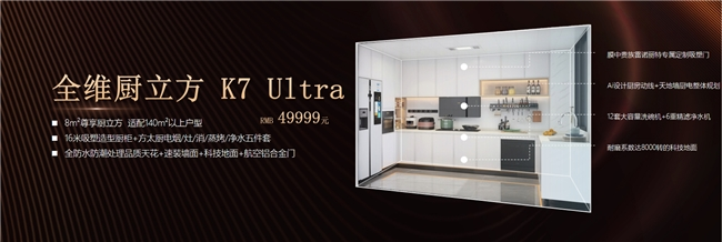 目前,全维厨立方 K7 推出了三大套餐:4㎡极致厨房19999元的全维厨立方K7、6㎡旗舰厨房 29999元的全维厨立方 K7 Max、8㎡尊享厨房49999元的全维厨立方K7 Ultra,满足不同家庭的需求。