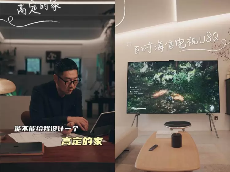 怎样让科技产品既不破坏空间美感,又能精准呼应这些场景需求?在社交平台上发布的一期视频里,王恒和客户的一场对话,揭开了空间里高定的秘密——海信电视U8Q。它既是百吋巨幕,又是光影艺术家;既是音响系统,也是空间调音师。