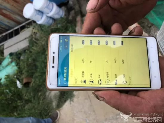 潘老板正通过“渔业云”APP查看鱼塘水质环境信息