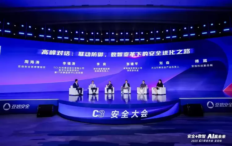 傅葳出席主论坛高峰对话环节,与亚信安全首席营销官周海涛、TCL科技集团数字化转型部部长兼IT共享服务中心总经理李福涛等共话数智变革与安全进化路径。傅葳介绍了亚信科技的行业大模型交付及安全应用实践。她表示,亚信科技在大模型交付业务中,针对“大型政企客户私有化部署、中小企业公有云/混合云”模式下的数据鉴权、链路安全防护等需求,将安全能力与行业特性结合,构建起可复用的全链路安全防护体系。
