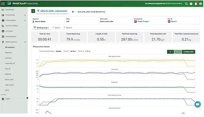 “对多丝埋弧焊工艺进行故障排除一直是一项挑战,而针对埋弧焊的WeldCloud则通过收集并分析每根焊丝、每个焊枪头和焊接电源的数据来满足这一需求。” 伊萨数字化解决方案全球产品总监 Jon Hofmann表示,“可以根据客户需要进行数据分类整理,例如按焊缝或焊枪分类,以满足项目对可追溯性、质量和生产率的要求。”