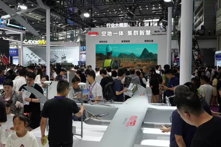 在占地120平米的展区内,道通智能通过设立多旋翼及倾转旋翼无人机展示区、空地一体沉浸式交互体验区、行业解决方案展示区、无人车及Autel Athena OS展示区,展示了产品核心技术及其智慧安防、智慧能源、智慧交通等空地一体解决方案,重磅产品的亮相吸引了来自全球的专业观众、行业领袖、专家及媒体记者簇拥在各大展示区,现场人头攒动,争相了解、体验其前沿产品。