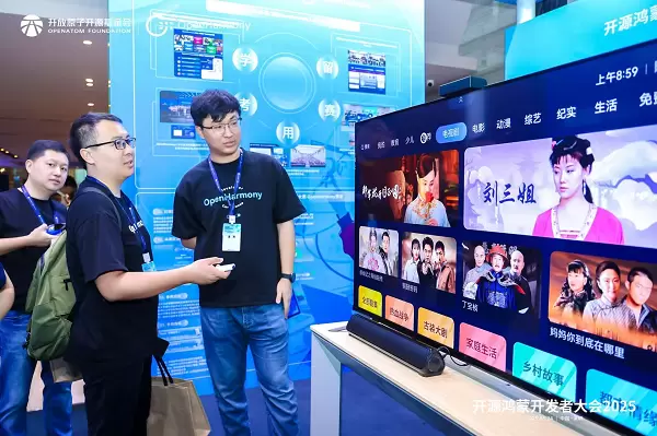 大屏生态交流区则重点展示了基于开源鸿蒙打造的TV形态操作系统,该系统集成红外、蓝牙、灵犀等多种遥控器的控制方式,基于开源鸿蒙底座分布式特性,支持分布式音乐 、图库、视频、摄像头、白板等应用 ,可实现多设备联动,高效协同。基于开源鸿蒙打造TV形态的操作系统会持续迭代,未来还将面向电视、投影仪、机顶盒、广告机、会议大屏等不同场景、不同设备实现适配。