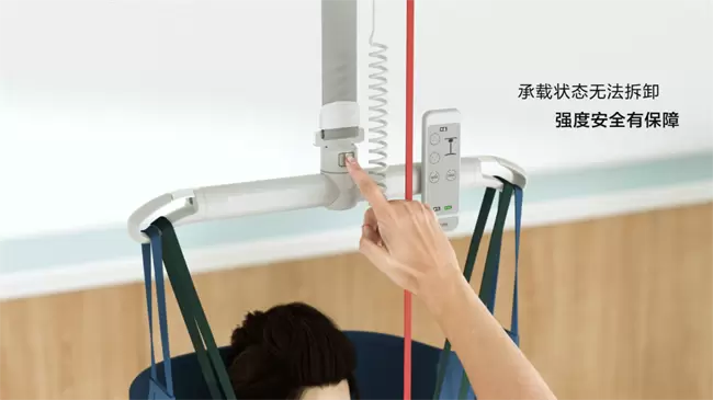 吊臂采用高强度金属材质,不仅结构稳固,更以简洁流畅的线条设计,融入现代医疗或养老环境,提升空间整体美感。