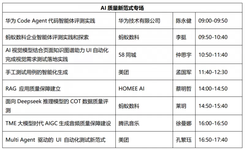 “AI质量新范式专场”将深入剖析AI算法飞速发展催生的新兴技术及应用,如AIGC、AI Agent、RAG等,以及大模型测试所面临的挑战与创新思路,以 “用魔法打魔法” 的独特视角,引领参会者探索未来AI质量保障之道。
