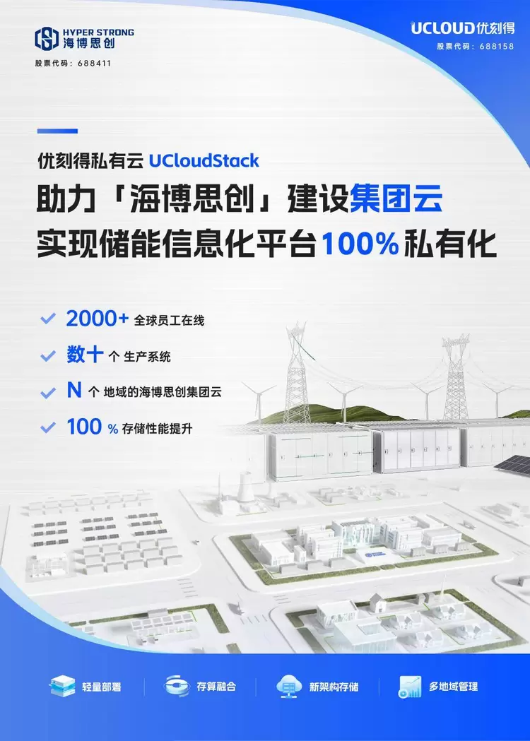 作为一家面向全球市场的储能企业,海博思创在储能研发、制造、交付过程中产生海量重要数据。2000+员工遍布全球多个地域,办公系统和业务系统种类繁多、协同频繁,分散的IT架构与第三方基础设施平台已难以满足其对数据安全、系统稳定及异地运维的需求。优刻得打造的集团云平台,帮助海博思创实现储能信息100%自主可控,满足协同一体化管理需求。