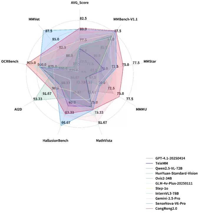 尤其在MMBench中文测试、高难度学科综合评测(MMMU)及高阶推理榜单(MMStar)中均拔得头筹,并在复杂场景文本识别(ocrbench)、开放域问答(MMVet)等关键场景中稳居全球前列,其综合能力较国际头部模型GPT-4.1领先近5分。