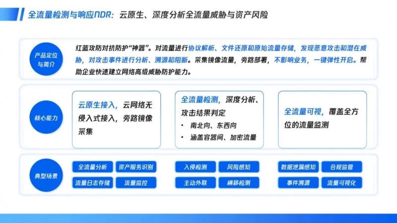 在此背景下,实现对高级威胁事件精准感知与深度分析及实时数据泄露监控能力的全流量检测方案已成为企业云上安全建设的刚需。