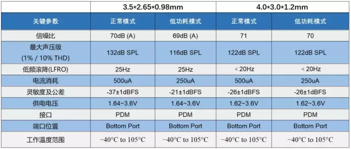 敏芯股份部分高性能MEMS麦克风产品特点如下:
