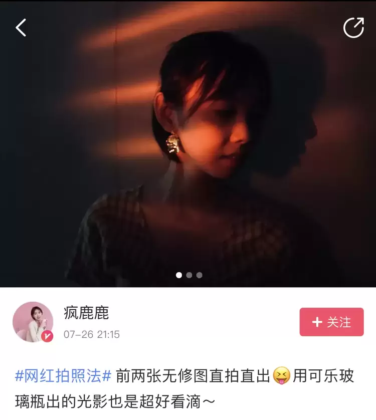 这位美图秀秀小姐姐将第二式和第三式相结合,用可乐瓶营造了迷离了光影氛围。没有做不到,只有想不到~