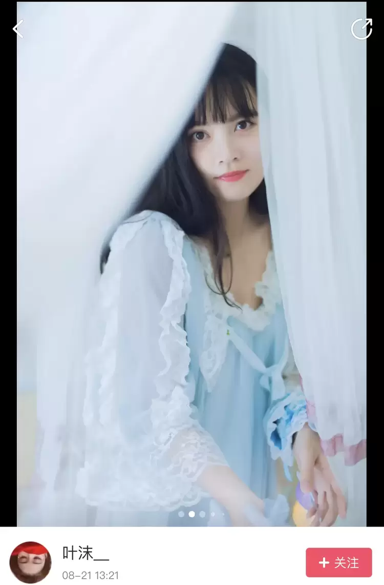 这位漂亮的“叶沫”小姐姐的照片看起来十分唯美,朦胧的纱帘似乎随时会落下遮挡出观者的视线。小姐姐在美图秀秀分享了这张照片的拍摄场地——一张小床、一帘蚊帐而已。