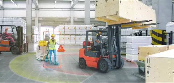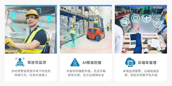 在制造业、物流业等场景中,叉车驾驶员视线能见度低,分心、疲劳驾驶时有发生,或有行人或车辆意外进入工作区,以及人车不分离、夜间作业等安全隐患无处不在,传统依赖人工观察和警示标识的方式已难以满足高标准安全需求。随着近年来AI技术的快速发展,叉车智能防撞系统被视为最有效的安全辅助工具之一。