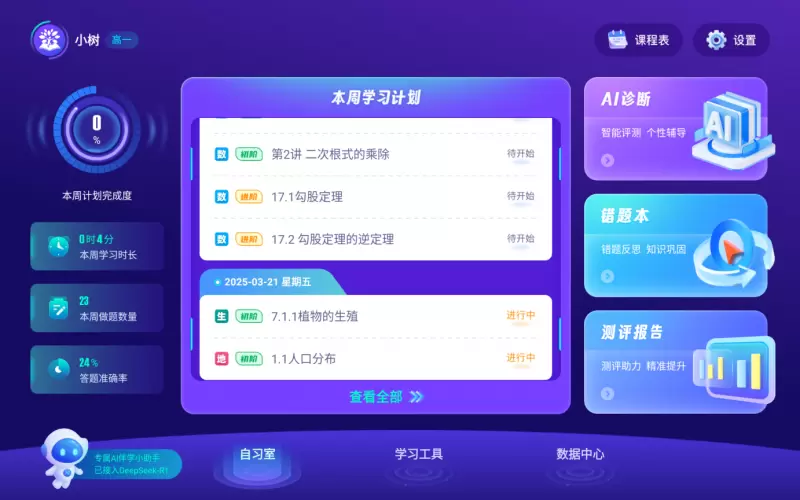 2024年,理想树坚持数字化发展战略,加快了数字化进程,推出了“理想树AI自主学习中心”,为学生打造了多层次的自主学习支持系统。系统整合800万精品题库为智慧底座,搭载智能诊断引擎,可探索定位每位学生的知识盲区;清北名师与优秀讲师组成的“教育智囊团”,将解题策略转化为可交互的智能课程;基于大模型生成的个性化学习方案,让每个孩子都能获得专属的成长路径。这种“人机共育”新模式,既保留了名师教学的思维深度,又发挥了AI的智能优势,真正实现了“千人千面”的智慧教育。