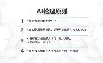 早在今年5月的贵阳数博会上,李彦宏就曾提出AI伦理四原则:AI 的最高原则是安全可控;AI 的创新愿景是促进人类更平等地获取技术和能力;AI 的存在价值是教人学习,让人成长,而非超越人、替代人;AI 的终极理想是为人类带来更多自由与可能。