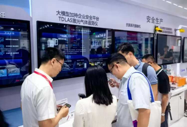 在安全生产展区,参观者只需扫码,并随手上传一张工业场所安全隐患的照片,企业安全生产管理平台即可快速识别出安全隐患。该平台搭载大模型能力,可实现隐患随手拍、隐患远程查、作业隐患一键智查。