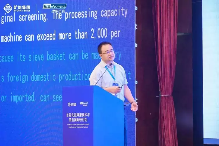矿冶科技集团有限公司正高级工程师张海亮分享了微粉干筛工艺在某钼矿的应用,可实现电耗降低34.26%,印证了“多碎少磨”理念的经济性。