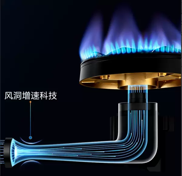 如何让火焰燃烧更快更猛?千百年来,古人早已学会用风箱加速空气流动,从而加速燃烧。基于类似的原理,老板电器研发团队引入航空科技中的风洞增压技术,将燃气灶混合管设计成风洞形态,开创了独树一帜的3D速火。