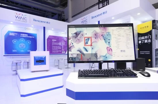 腾讯觅影展区同样是科技感爆棚。作为腾讯首款人工智能与医学结合的 AI 医学产品,觅影实现了利用 AI 医学影像分析,辅助医生筛查食管癌、肺结节、糖尿病视网膜病变、结直肠肿瘤、乳腺癌等疾病的功能。它通过可视化的前沿展现形式,让观众更加直观感受到医学技术的突破创新。