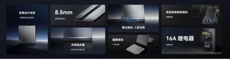 Yeelight Pro E系列智能开关以8.5mm超薄航空铝材面板重塑墙面美学,0.5mm天际线光幕与雷达芯片实现人近缓亮、触控流光的诗意交互。其内部采用电竞级欧姆龙微动开关,10万次暴力测试确保清脆毫秒响应。配套磁吸式无线六键情景面板,自由布局全屋场景。激光镭雕透光字符与可替换按键设计兼顾盲操指引与艺术重构能力,让墙面化身科技艺术品。