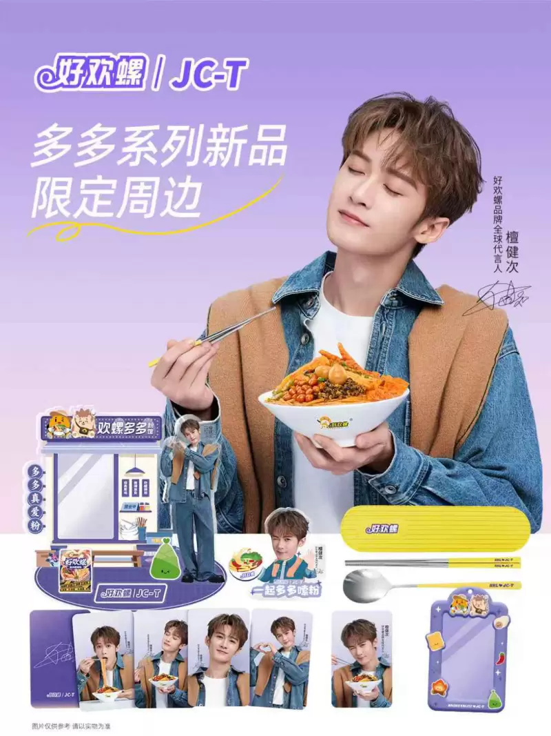 此次“好欢螺x檀健次”联名定制新品“料多多嗨吃螺蛳粉”“酱多多爆炒螺蛳粉”和欢螺多多大礼包的全球首发,再度掀起了全网热议与抢购热潮。同时,“欢螺多多系列”作为618的战略新品,“新食代场景革命者”不断破圈——以代言人檀健次形象大礼包包装和每款新品五款代言人形象产品为吸睛亮点,打造强烈视觉效果,激发粉丝收集欲和二创热情;创新食材矩阵(虎皮凤爪、贡菜)解锁增量市场(如:深夜加班的职场新人、热衷猎奇体验的潮玩青年);通过各类周边构建出“日常美食刚需+粉丝社交货币”的产品梯队,覆盖各种人群的需求,既保留地道柳州风味基因,又创造“可晒可玩”的社交属性,以“料多、酱多、惊喜多”的产品理念,为粉丝乃至全体消费者打造了一场味蕾与情感的双重盛宴。