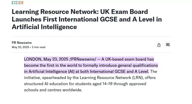 重磅发布:全球首个AI“高考”课程出炉!英国LRN考试局为中学生铺设通往未来的“新赛道”
