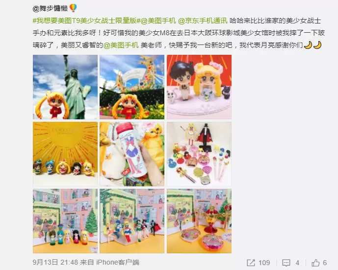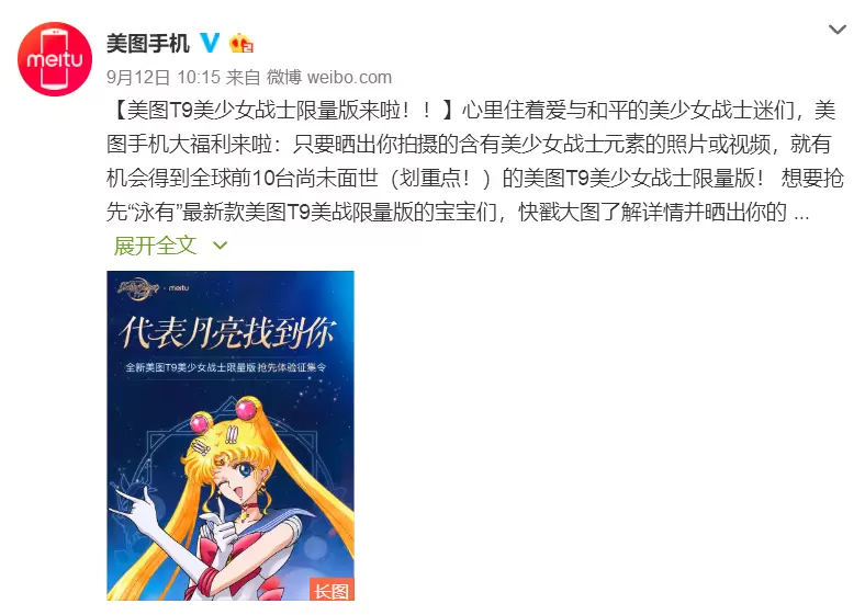 在9月10日美图手机公布“把热爱握在手中”联名限量版系列海报后,就引发了诸多美图手机忠实粉丝和动漫迷的关注,而随后在美图手机官方微博发起的美少女战士相关的互动活动,更是让不少IP粉主动参与,掀起一阵晒美少女战士的热潮。