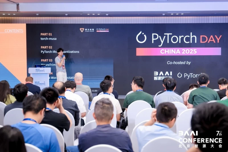 在PyTorch DayChina上,摩尔线程算法工程师莫凡在会上发表题为《A torch.fx Based CompressionToolkit Empowered by torch musa》的技术演讲,介绍了摩尔线程在PyTorch生态中的技术创新成果。他详细阐述了摩尔线程MUSA架构及Torch-MUSA的先进性,并重点讲解了基于torch.fx的模型压缩工具NeuroTrim。该工具创新性支持FP8精度量化,能在不同任务中智能权衡性能与精度,显著提升模型推理效率,加速AI部署。未来,NeuroTrim将进一步拓展应用于大语言模型(LLM)和视觉语言模型(VLM),引入容错机制与更快量化速度,为开发者提供更高效、更可靠的工具支持。