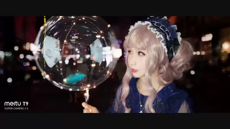 再来看看夜景中美图T9的表现。据了解,美图T9可以将人像、背景、光线分离重构,针对性优化,加上前后均设置的自拍补光灯和1.4μm大感光元件,让噪点降到最低,即使在暗光、逆光、复杂光条件下也能拍出高画质。直闪效果下,甚至可以打造出一种胶片质感。