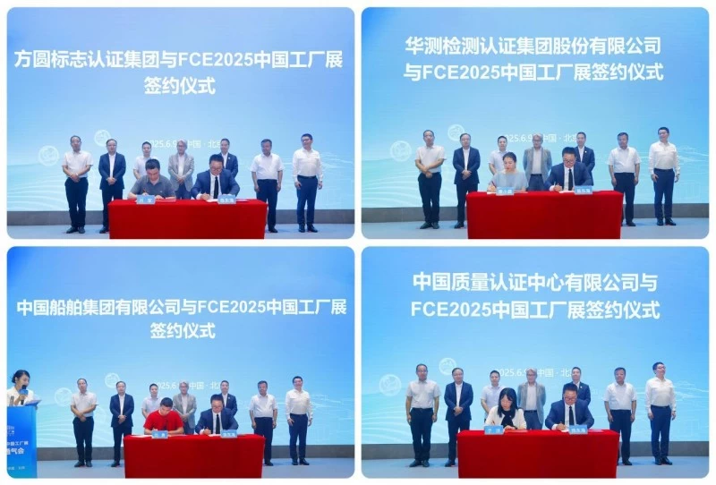 在通气会上,FCE2025中国工厂展与中国质量认证中心、方圆标志认证集团、华测检测认证集团、中国船舶集团等机构达成了深度合作,各方将充分发挥各方在认证评价、技术创新、产业实践等领域的专业优势,深度参与展会及相关活动的举行,为零碳工厂建设提供标准化的技术评价体系,共同推动工厂绿色低碳转型快速发展。