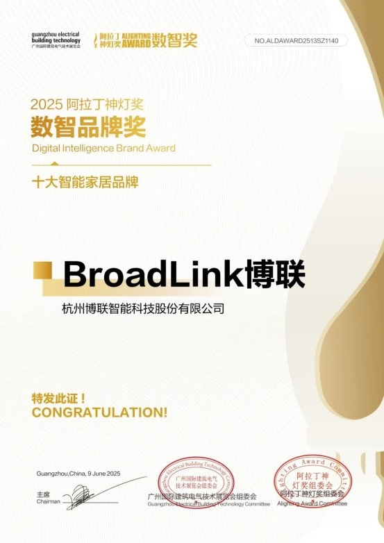 光亚展期间,2025年阿拉丁神灯奖颁奖典礼同步举行,博联智能斩获“十大智能家居品牌”奖项,品牌实力与产品力再获权威认可。