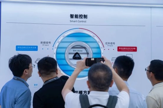 在智能家居生态展区,博联年度力作—RM MAX万能遥控成为全场焦点,充分展现了产品创新实力。作为畅销全球的RM系列旗舰新品,RM MAX在技术上实现了全面飞跃。不仅能本地控制红外、射频设备,覆盖市面上98%的品牌家电,支持自学习未收录设备。更集成了智能网关功能,支持设备语音、远程、定时等智控方式。尤为重要的是,作为FastCon子设备,它可以实现与其他生态智能设备与BroadLink生态的智能设备跨品牌联动,拓展智能场景无限可能。