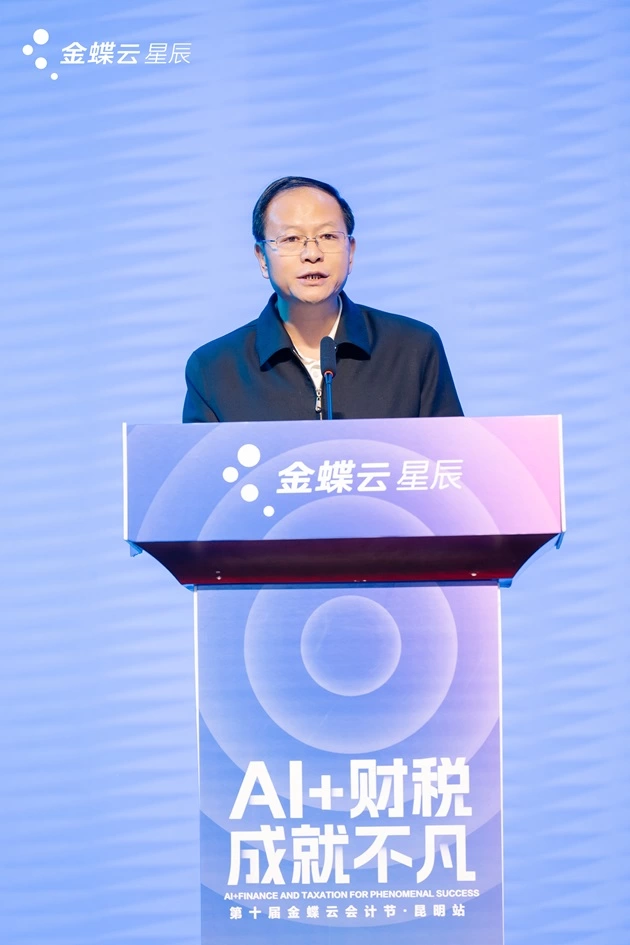 云南省智能与数字经济协会会长张华为本次活动致辞,他强调,会计工作是市场经济的重要基石。面对数智化浪潮,会计人员亟需提升专业素养和综合能力,助力企业筑牢合规防线。协会很高兴与金蝶携手,为推动会计行业转型升级贡献力量。