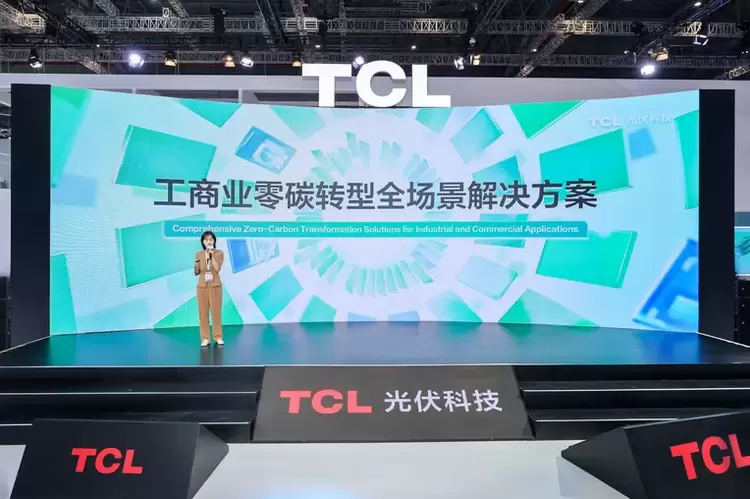 展会首日,TCL光伏科技举办新品发布会,围绕“电碳融合 智启未来”、“海外一站式户用能源解决方案”、“工商业零碳转型全场景解决方案”三大主题,全方位解析创新业务与产品方案。