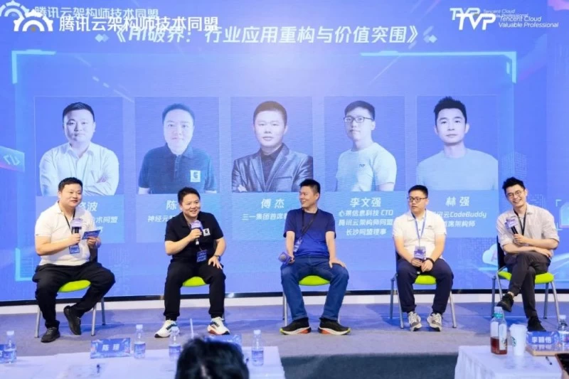 活动特设圆桌对话环节,在腾讯云架构师技术同盟活动组织主席 王晓波的主持下,神经元智能科技 CTO 陈顼,三一集团首席数据官 傅杰,心莱信息科技 CTO、腾讯云架构师同盟长沙同盟理事 李文强,腾讯云 CodeBuddy 首席架构师、腾讯云架构师名人堂专家林强四位专家,围绕 “AI 破界:行业应用重构与价值突围”为主题,深入探讨 AI 跨行业融合的创新路径与实践经验,为参会者带来多维度的思考与启发。