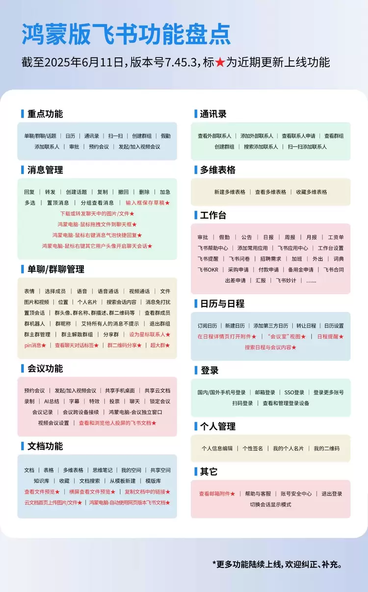 - 鸿蒙版飞书再更新,消息、会议、文档、日程及电脑端体验全面升级