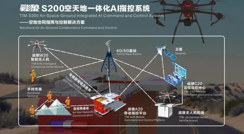时代星光董事长彭彦平亲自讲解了获得工信部揭榜挂帅产品战狼W20无人机技术内核,演示了战狼S200空天地AI指控系统,并表示战狼S200空天地一体化AI指控系统是时代星光成立22年来集科技研发的全球领先智能指挥控制平台,深度融合人工智能、无线通信及无人机技术,为“低空全域+”提供空天地一体化解决方案。