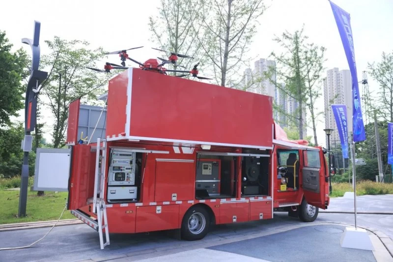 启动仪式现场,时代星光还展示了战狼无人机先进的六大场景技术运用,“战狼C100”穿越机展示了高速飞行与定点目标打击打靶能力。“战狼A300”固定无人机机场自动起飞、执行任务、回舱换电的全流程,具备自动巡检管控全域自动化。“战狼W20”无人机展示河湖江海水域巡查作业,“战狼X260”无人机则模拟了森林消防灭火,应急救援场景。“战狼X30”系留无人机升空后120米喷射泡沫灭火剂,其通过地面供电可实现24小时以上滞空作业,高空灭火救援。