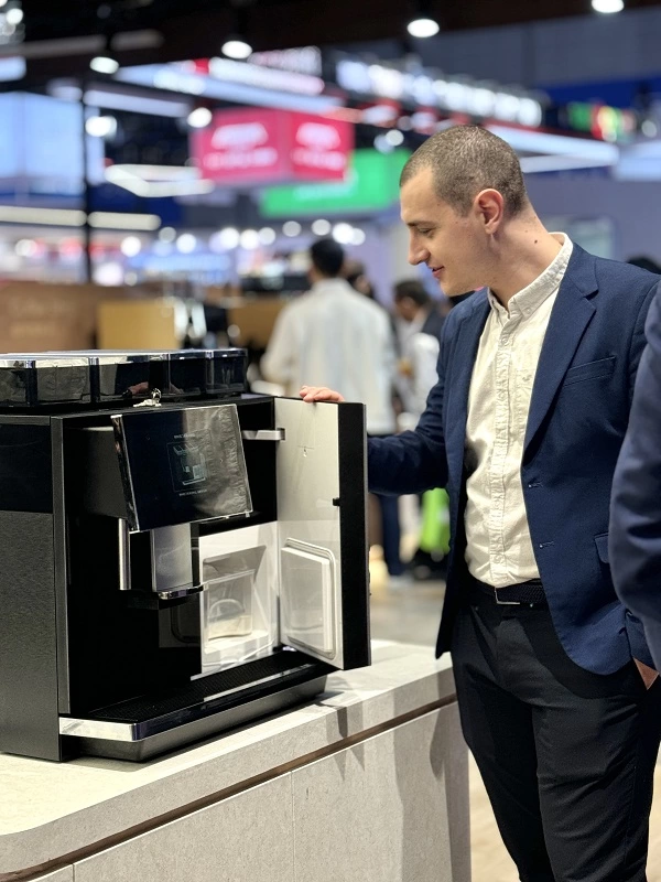 随着咖啡市场规模的持续突破,消费场景从专业咖啡馆向便利店、酒店、企业办公室乃至家庭厨房快速延伸,市场对咖啡设备的需求正经历一场深刻的变革,对咖啡设备的需求也呈现多元化、专业化趋势。传统设备因功能单一难以满足跨界需求,行业亟需创新解决方案。在此背景下,咖博士推出多款全自动咖啡机,精准匹配多场景应用。其中,品质推出的产品M22是为解决酒店、办公领域对于多品类饮品诉求及鲜奶储存问题,做出的一款具有颠覆性设计的冰箱与咖啡机一体机。